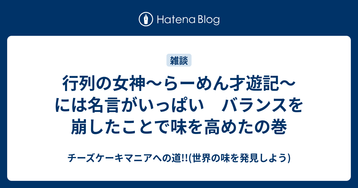 行列の女神 らーめん才遊記 には名言がいっぱい バランスを崩したことで味を高めたの巻 チーズケーキマニアへの道 世界の味を発見しよう